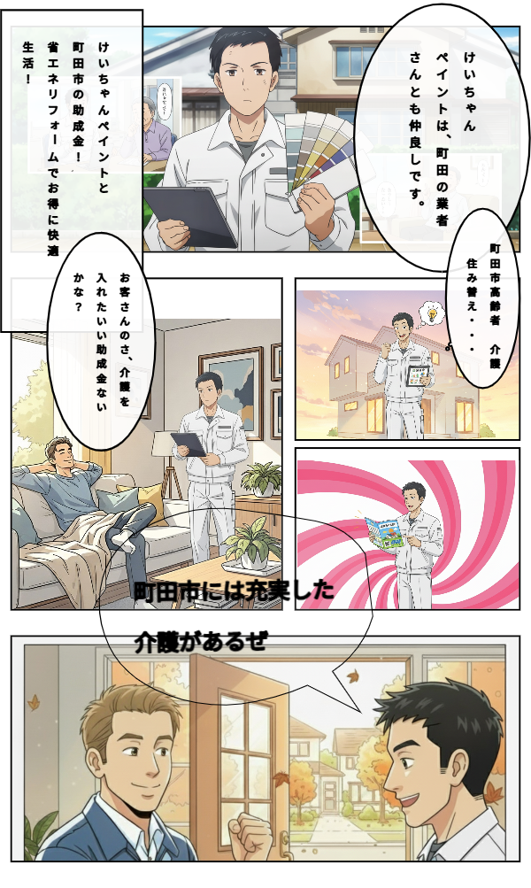 助成金を活用したリフォームを成功させるためには、制度の知識だけでなく、「信頼できるパートナー=業者」選びが何よりも重要になります。残念ながら、助成金を利用した高額な契約を迫る悪質な業者が存在するのも事実です。けいちゃんペイントは 町田市に事業所を開設している業者を紹介できますし 常に優良業者を探しております。また お客様の好みの業者を探すこともできます。